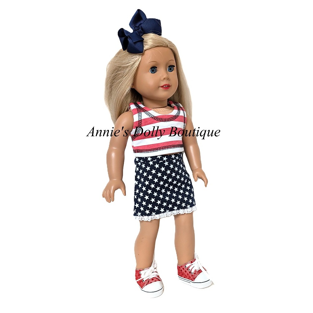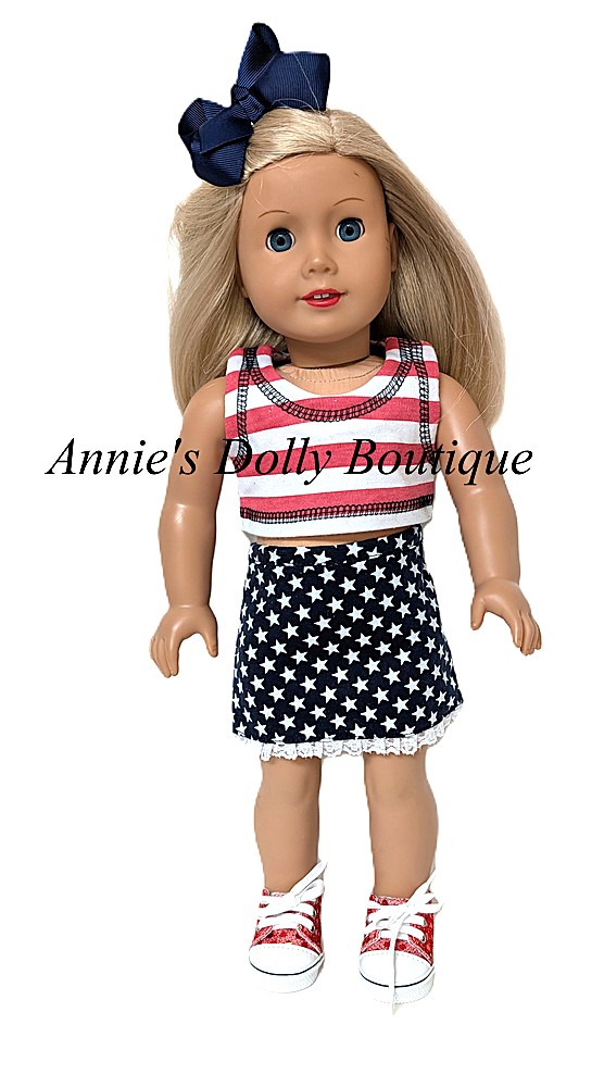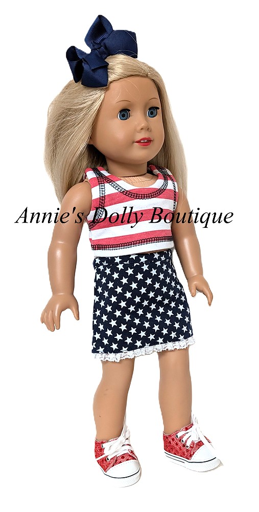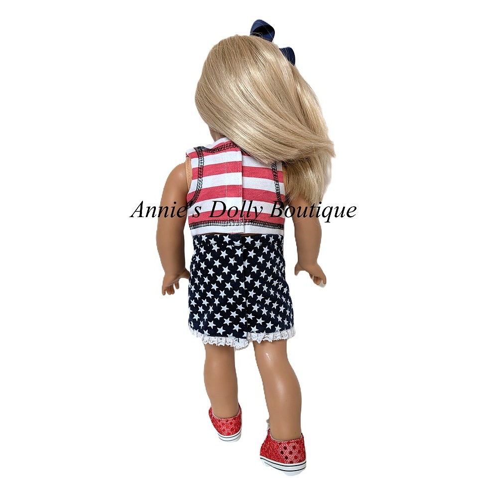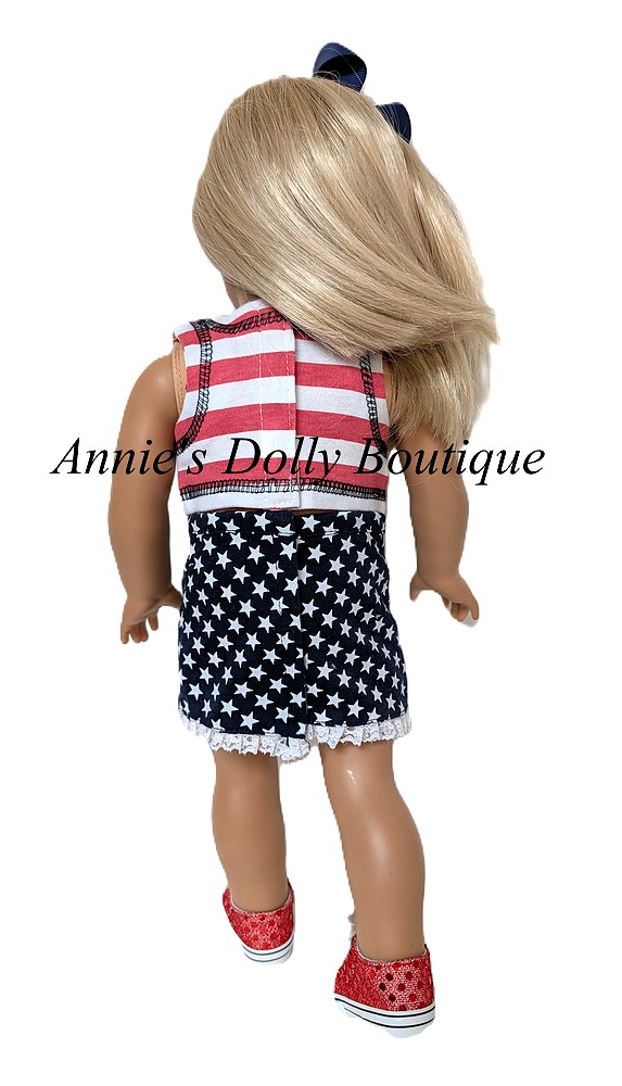 Dress your doll in this stylish 5-piece 4th of July outfit!