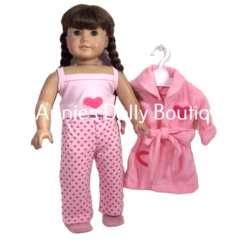 The set features a soft pink tee with a heart on the front, matching heart pajama pants made from a comfortable fabric for easy movement, along with a delightful robe that adds an extra layer of warmth and style.